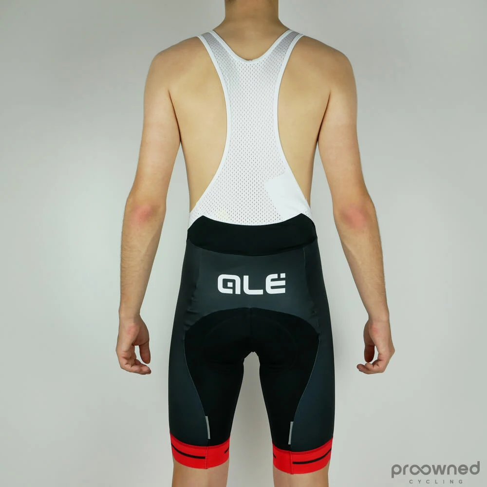 Brand new Alé Plus BIB shorts in black and red with Alé Shammy 2HF pad. Plus is Alé’s line specifically for the everyday keen cyclist looking for garments that they can rely on to perform ride after ride. Every detail has been carefully considered to aid comfort, ensure a perfect fit and offer excellent performance from short local rides through to tackling the toughest of riding challenges.