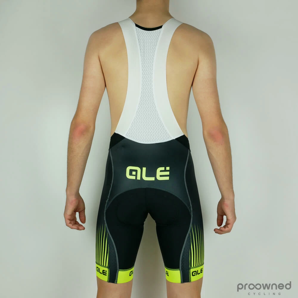 Brand new Alé PR.R BIB shorts with Alé Shammy 8HF pad. Designed for both training and racing, the PRR series from Alé will give you only the best. All clothing in the PRR line is made from the best garment and technology. The PRR BIBs feature a micro-perforated fabric which is very quick drying and ensures excellent ventilation, this will keep you comfortable and fresh as you hit the climbs. Meanwhile, the design secures a tight and well-fitting BIB short. The straps are made of super stretchable fabric which gives superior fit and high comfort. The Carbon Wave adds the finishing touch, ensuring bacteria can’t build up and guaranteeing freshness and no odors.