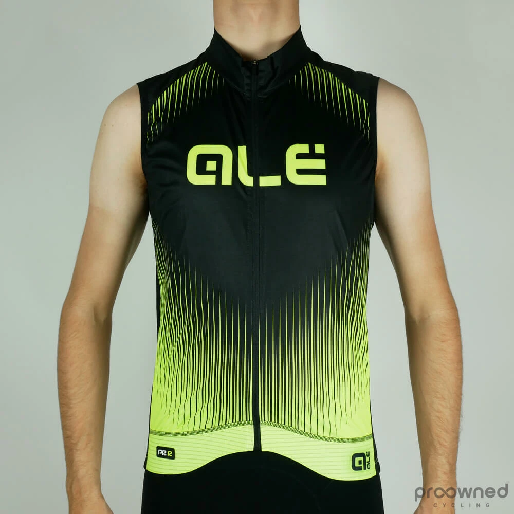 Brand new Alé PR.R wind vest. Designed for both training and racing, the PRR series from Alé will give you only the best. All clothing in the PRR line is made from the best garment and technology. The front of the vest is made of windproof fabric which keeps cold wind away from the core no matter if you are climbing, descending or racing. The vest is made with a back mesh side for high ventilation and breathability.