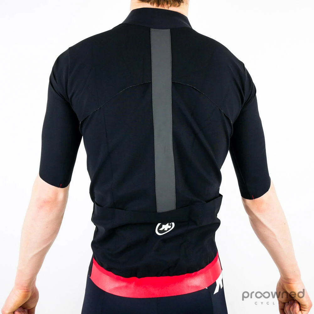 The Liberty is classified as a “rain thermo racing device.” It is stringently engineered to be as watertight as necessary, as aerodynamic as possible, and as low volume as needed when performing at your maximum. The Liberty relies on Assos non-porous Stratagon Light fabric, which remains lightweight and able to perform even when wet.