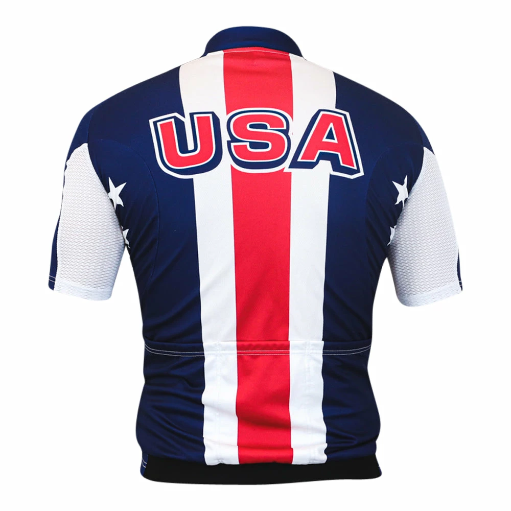 This Team USA Cycling short-sleeve jersey features a BMC Switzerland logo on the right sleeve.