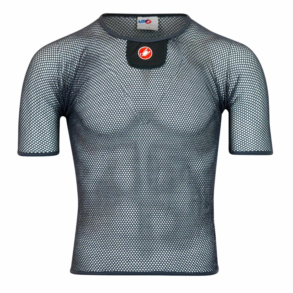 Castelli core mesh 3 SS Base layer is the Castelli’s lightest and most airy base layer that wicks moisture away from your skin and the open mesh helps keep the jersey up and away from your skin.