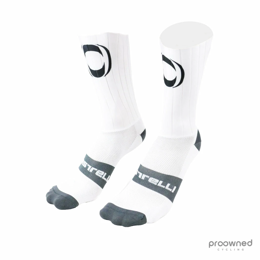 The Fast Feet sock provides an aero advantage for road cyclist. The high cuff is made out of the same material as Castelli’s TT shoe cover, while the sock part is based on the Rosso Corsa Sock, giving maximum comfort.