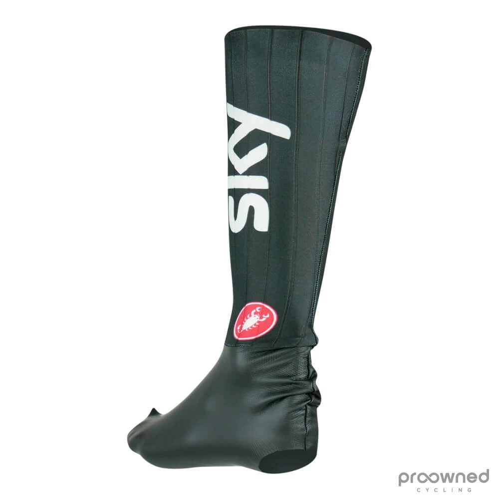 Brand new Castelli Fast Feet TT shoe covers from Team Sky* made for the 2019 season. The Castelli Fast Feet TT shoe covers the ‘Fast Feet’ project, a series of products designed to maximize aerodynamics during time-trials and all while keeping within the constraints of the UCI rules.