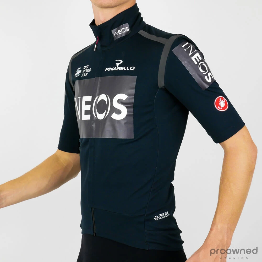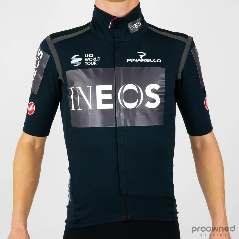**As a part of the transition from Team Sky to Team Ineos all of their heavy-duty clothing had to be rebranded in order to accommodate the team’s new name. This is why the rebranded clothing features a Team Sky logo on the inside of the garment while the outside branding is Ineos.