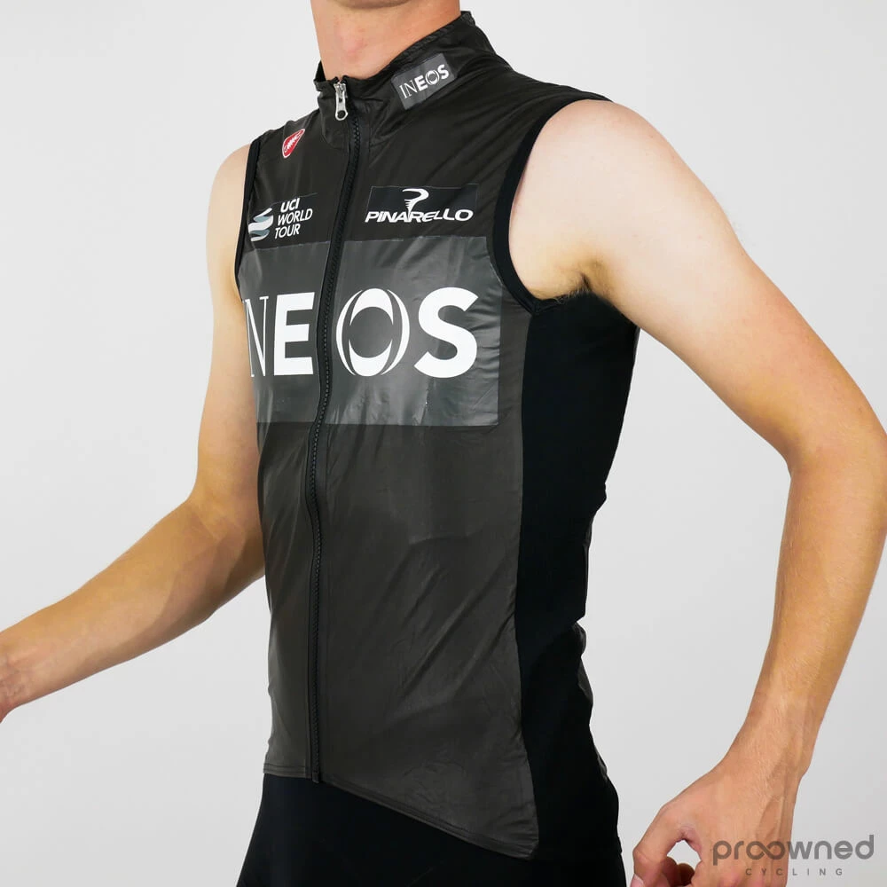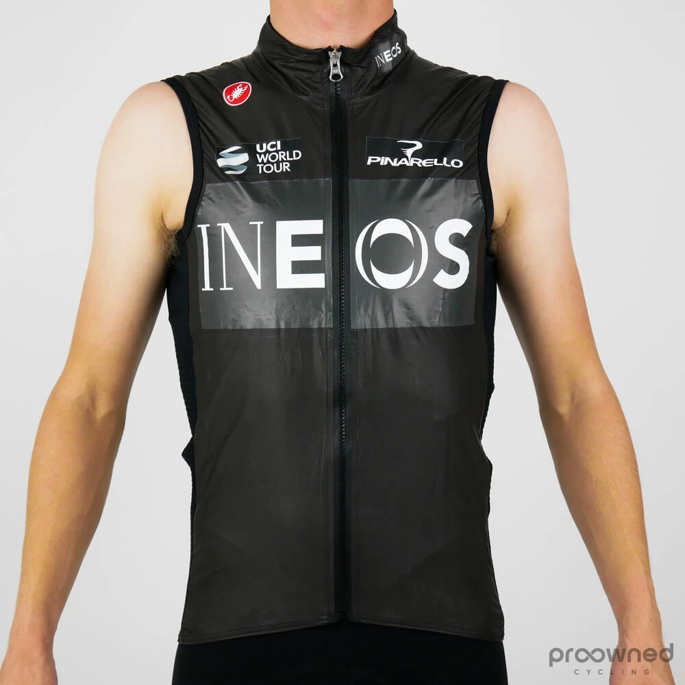 **As a part of the transition from Team Sky to Team Ineos all of their heavy-duty clothing had to be rebranded in order to accommodate the team’s new name. This is why the rebranded clothing features a Team Sky logo on the inside of the garment while the outside branding is Ineos.