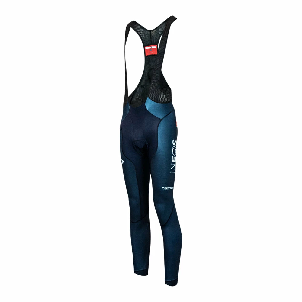 Castelli lightweight winter cool-weather tights by Ineos Grenadiers keep the upper leg warm while reducing coverage on the lower leg for more flexibility and “just right” warmth.