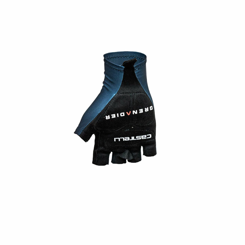The Castelli Mk2 Racing gloves by Ineos Grenadiers have a slip-on aerodynamic fit thanks to the stretchy and form-fitting fabric. The glove’s long cuff gives an aerodynamic advantage over a standard length cuff.