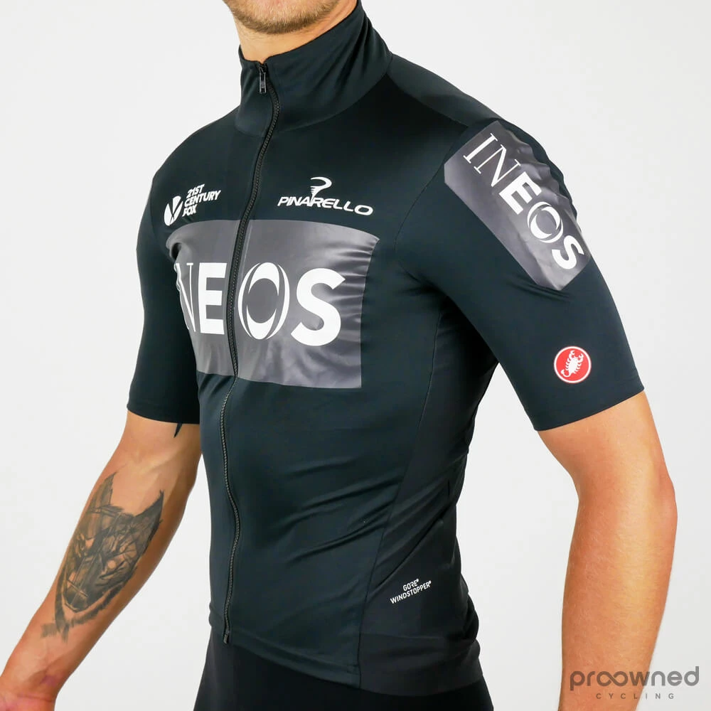 **As a part of the transition from Team Sky to Team Ineos all of their heavy-duty clothing had to be rebranded in order to accommodate the team’s new name. This is why the rebranded clothing features a Team Sky logo on the inside of the garment while the outside branding is Ineos.