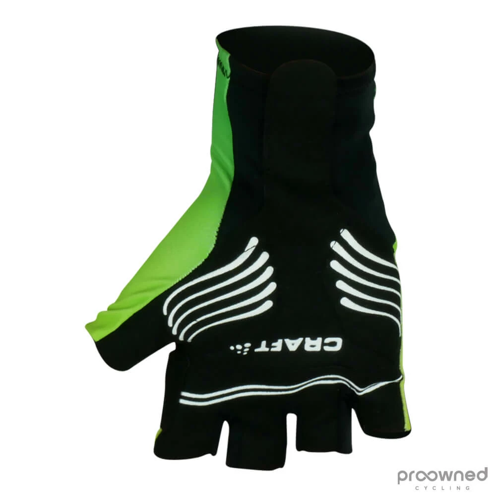 Brand new aero gloves from CRAFT. These aero gloves come directly from the World Tour Team Orica-GreenEDGE* and is made for the 2015 season. The aero gloves are produced by the Swedish top brand Craft. The aero gloves come with a thin gel padding and synthetic leather palms. The aero gloves have a tight fit and are therefore perfectly placed on your hands.