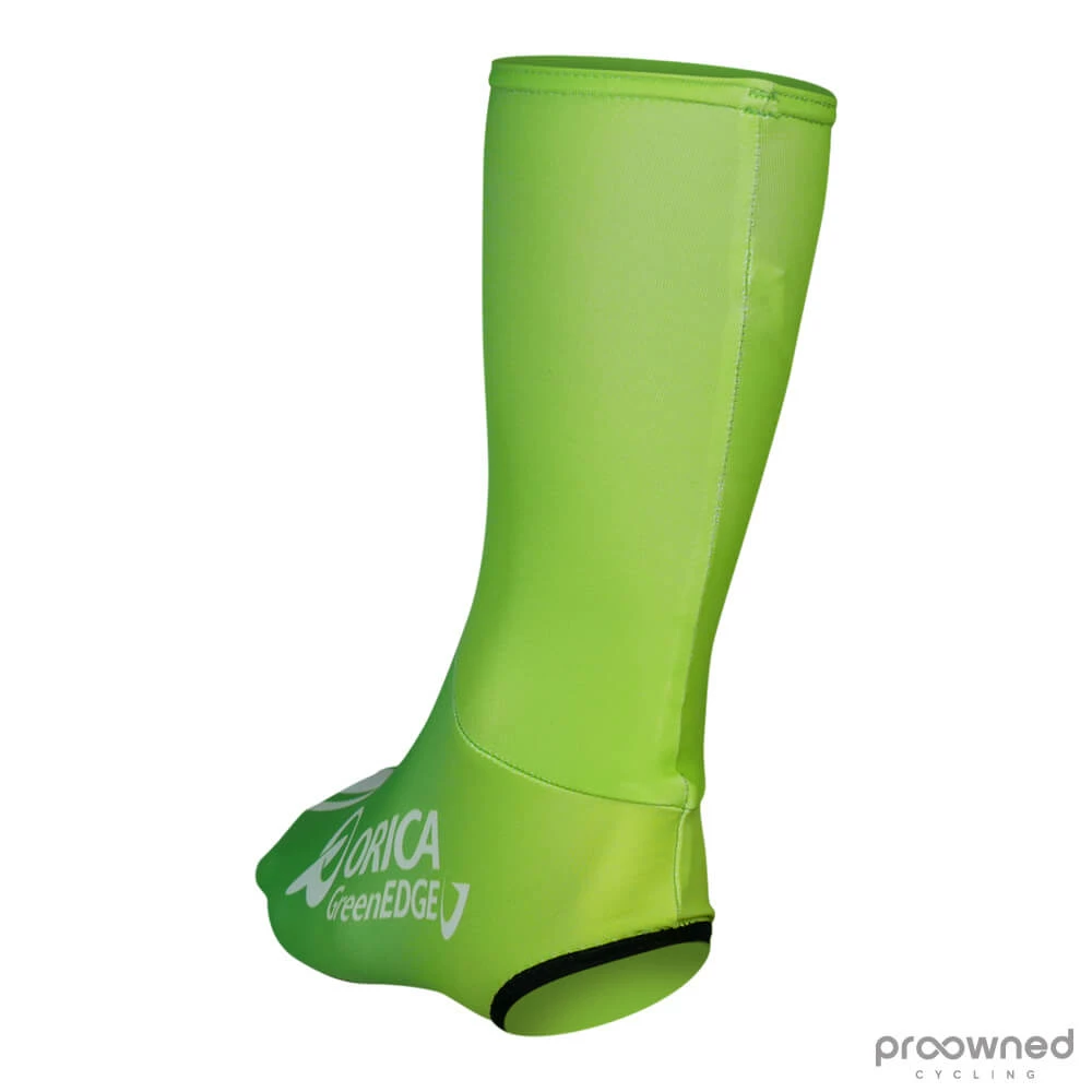 Brand new lycra aero shoe cover from CRAFT. This aero shoe cover comes directly from World Tour Team Orica-GreenEDGE* and is made for the 2015 season. This shoe cover can be used as an aero shoe cover for optimized aerodynamics but also as an extra layer outside your shoes when it is just not warm enough to ride without shoe covers. The covers are made without a zipper to make a tight and aerodynamic fit.