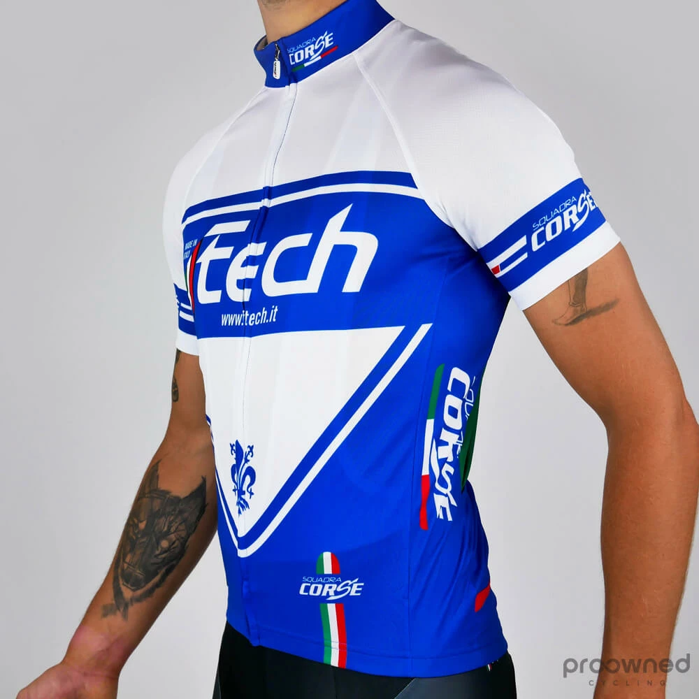 This jersey from Ftech is made from 100% polyester. It is equipped with a mesh net on the sides and under the sleeves to alleviate heat. It has three back pockets, which allows you to bring along your gear.