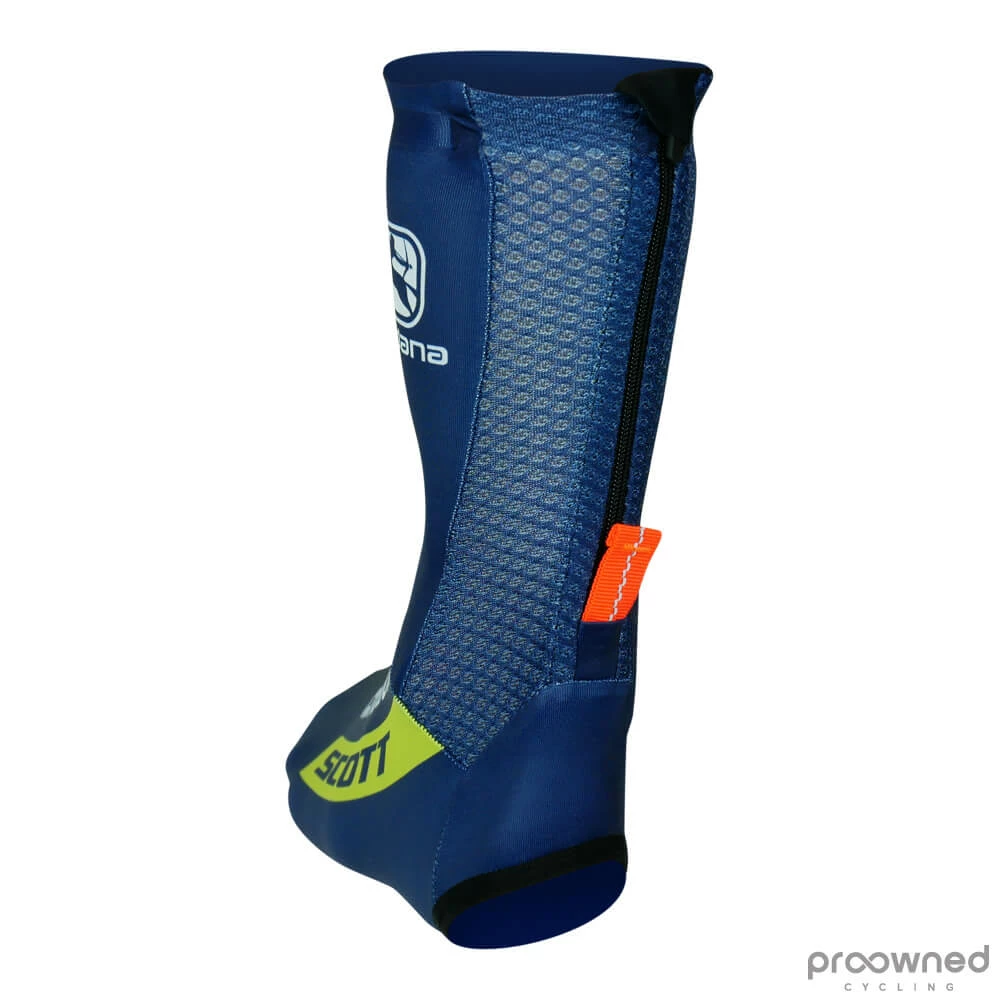 Brand new aero shoe cover from Giordana. This aero shoe cover comes from the World Tour Team Mitchelton-Scott’s development team, Continental Team Mitchelton-Scott. It is made for pure speed and every detail is optimized for the best possible performance. The fabric is extremely stretchy in order to fit as tight as possible to the shoe. The zipper on the backside will help you to slip in the covers. An elastic silicone band is placed at the top of the covers to keep them neatly in place. The fabric is very thin. This makes a high-performance shoe cover that is still breathable and comfortable