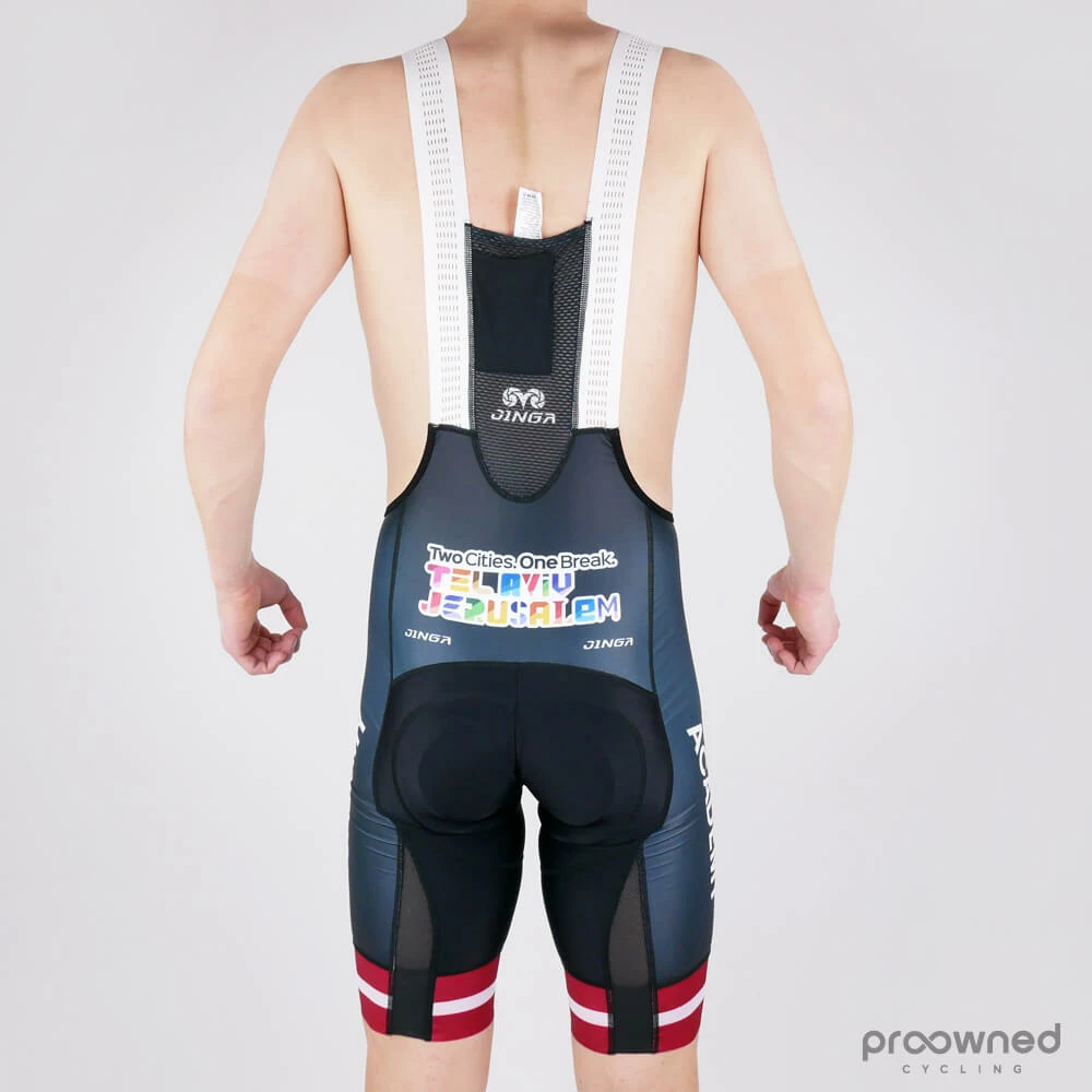 Brand new bib shorts from Israel Cycling Academy* made for the 2019 season. The team bib shorts are made for maximum performance and comfort. Thanks to the fabric, the bibs are made with a tight fit which is still comfortable and breathable. The straps are made to secure the right fit even when the race is on. The laser-cut leg grippers are lined with soft silicone for a close, comfortable fit that will keep the bibs in place at any time.