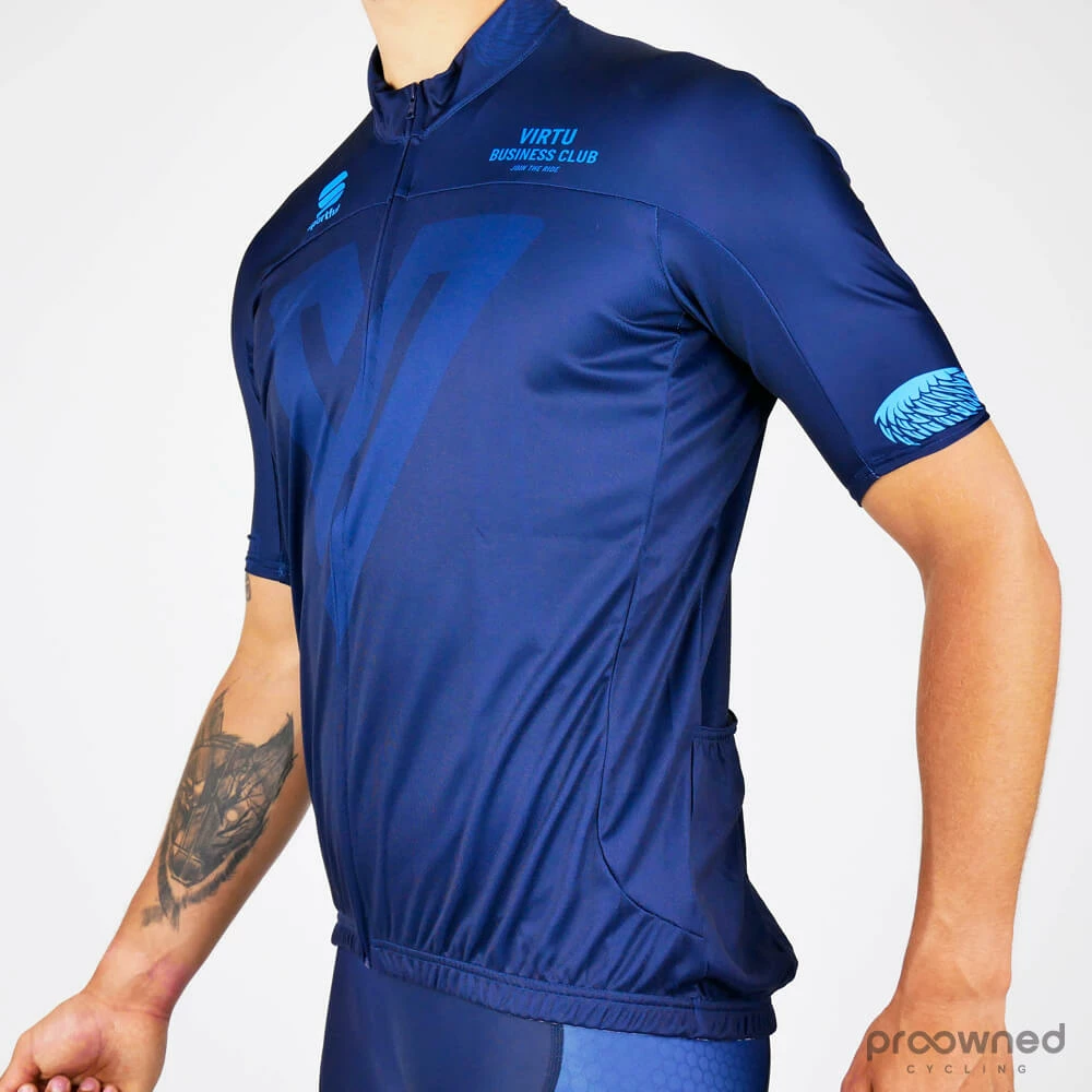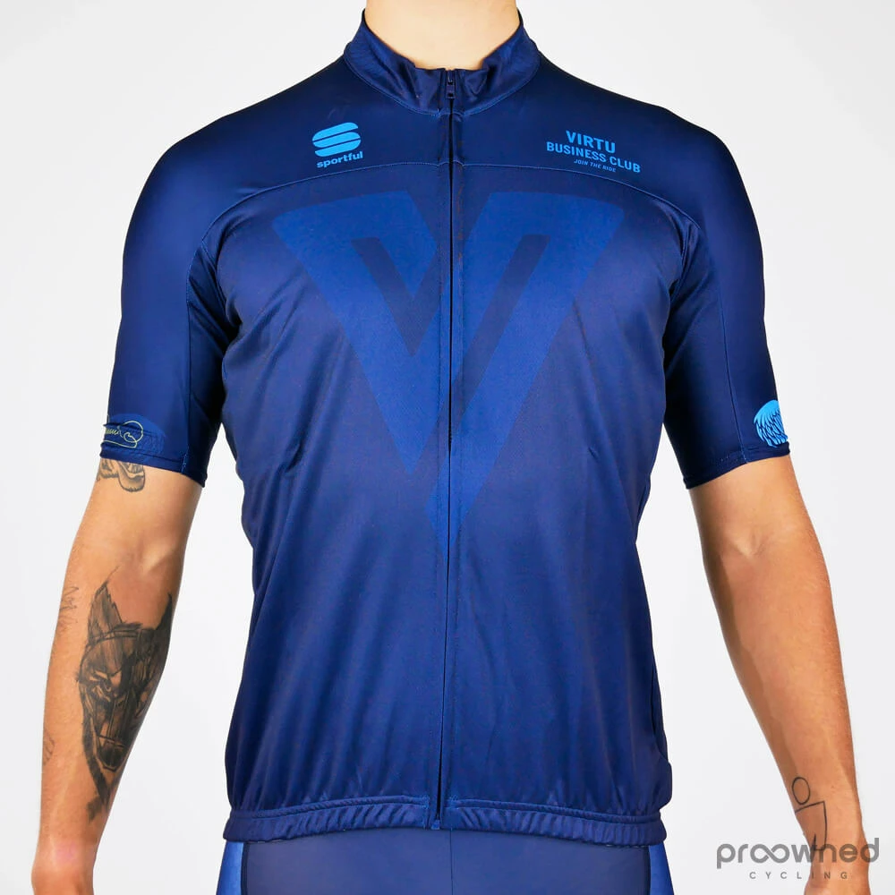 Brand new short sleeve jersey from Sportful. The jersey was originally made for the Virtu Business Club, however, the timeless, neutral design makes this jersey a good choice for any rider. The jersey is made in a tight, yet comfortable and breathable, fit. The fabric is designed to transport sweat away from the body and thus keep you dry. Finally, the jersey is equipped with three back pockets and a silicone gripper around the waist.