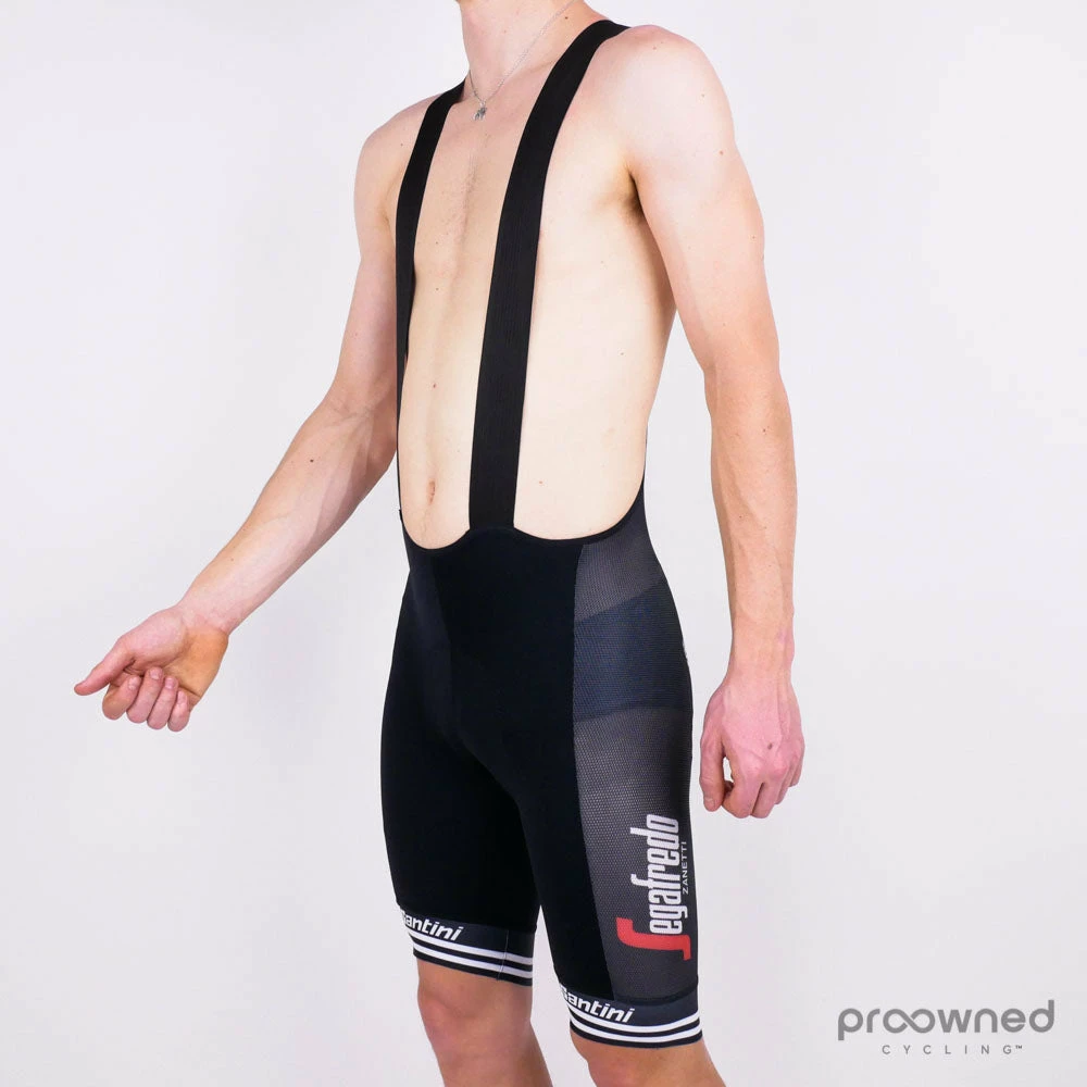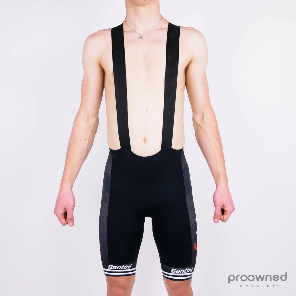 Brand new Santini Trek-Segafredo world tour team BIB shorts. These BIBs with the Santini C3 pad are Santini’s take on a super comfortable and high-end BIB short. It is made with comfort and racing as the priority. The ends of the legs feature a silicone gripper which ensures the BIBs stay where you put them.
