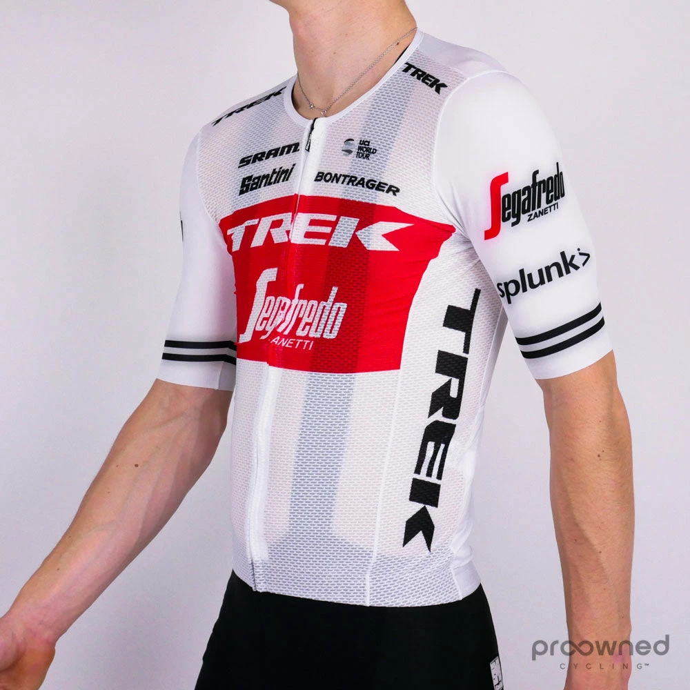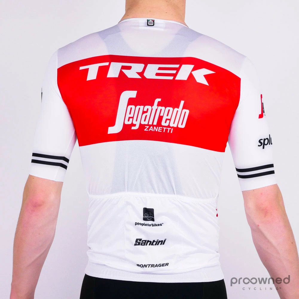 Brand new short sleeve jersey from Santini. This jersey comes directly from the Trek-Segafredo world tour team and is made for the 2019 season. The jersey is tight and aerodynamic. The jersey is made of extra thin fabric for hot summer days where ventilation and best perspiration.