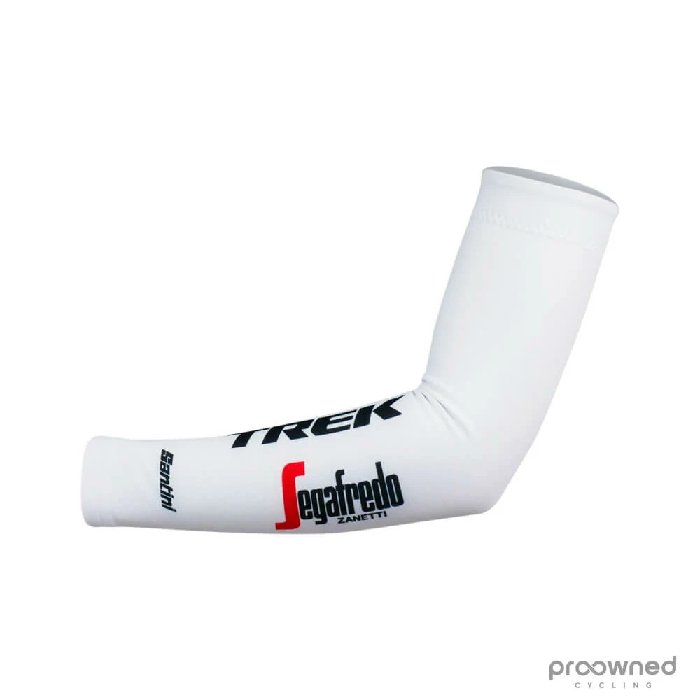 Brand new arm warmers from Santini. These Santini arm warmers come with a brushed inside that keeps your arms warm in cold conditions. They have silicone at the upper hem, that makes sure the arm warmers stay in place, and they are ideal for changing weather which makes them perfect for cycling purposes.
