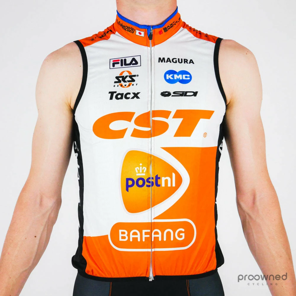 Sportconfex Wind Vest made for the team CST PostNL Bafang and was intended to be used by Sebastian Fini.